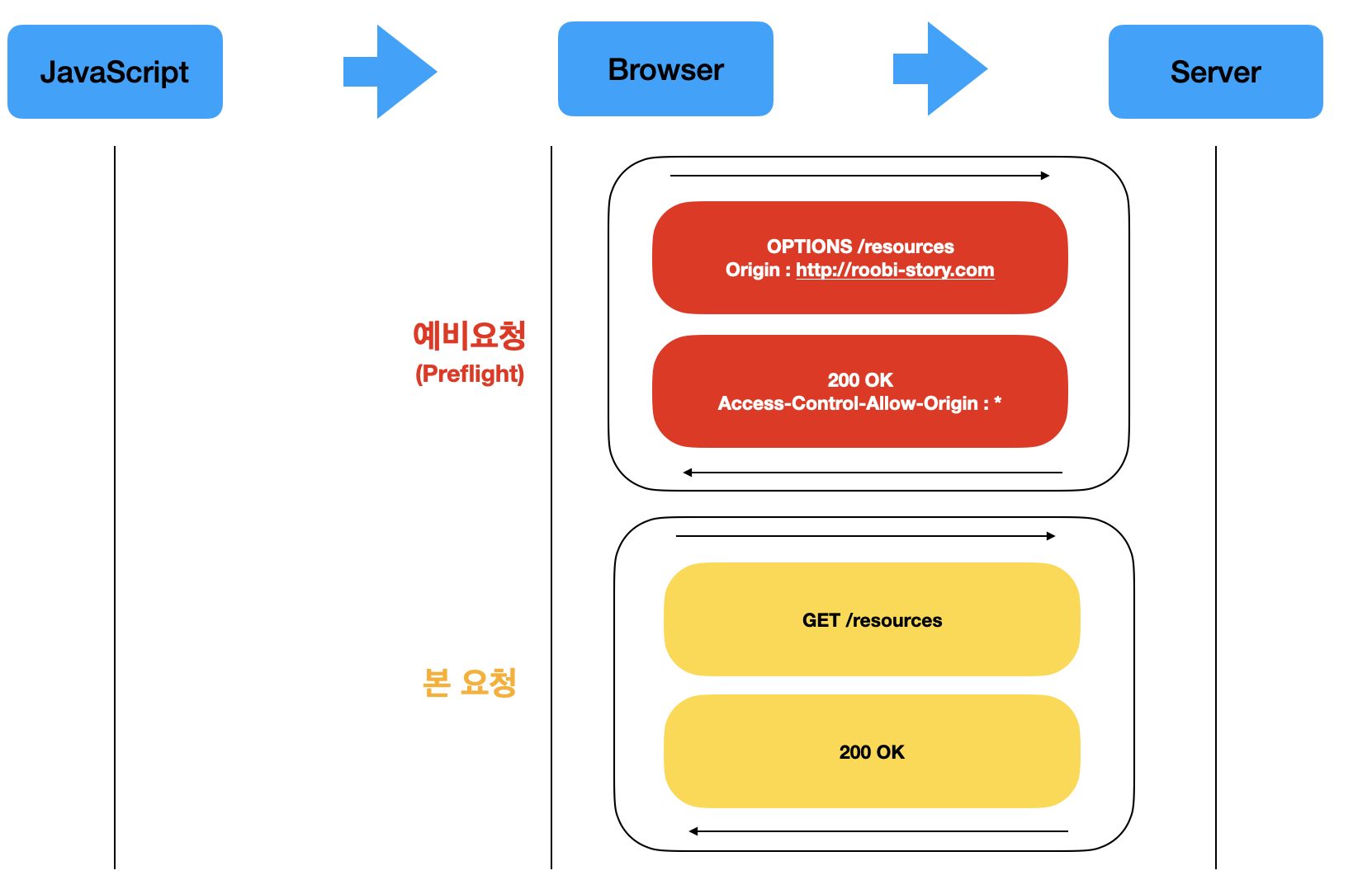 1. CORS(Cross Origin Resource Sharing)란? - 다른 출처 리소스 공유 - HTTP 요청은 기본적으로 Cross-Site HTTP Requests가 가능하다. - 하지만 Cross-Site HTTP Requests는 Same Origin Policy를 적용받기 때문에 요청이 불가하다. 그럼 Same Origin Policy는 뭐야? 먼저 Origin에 대해서 알아보자. Origin(출처)은 Protocol, Host, Port 번호까지 모두 합친 것을 의미한다. SOP (Same Origin Policy)? SOP는 지난 2011년, RFC 6454에서 처음 등장한 보안 정책으로 말 그대로 “같은 출처에서만 리소스를 공유할 수 있다”라는 규칙을 가진 정책이다. 그러나 웹이라는..